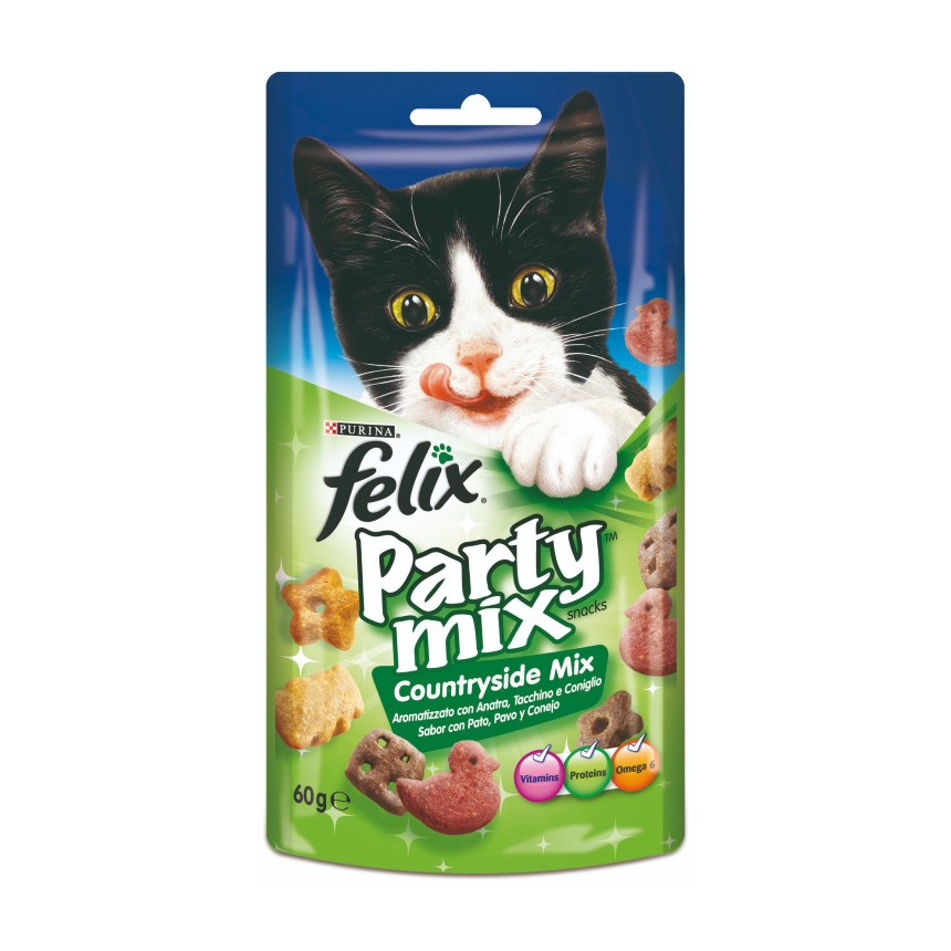 Γευστικές λιχουδιές για τη γάτα σας με ένα picnic mix στο υπέροχο μείγμα FELIX countryside mix. Μια υπέροχη δελεαστική απόλαυση για ενήλικες γάτες. Κατασκευασμένα με ποιοτικά, θρεπτικά συστατικά, οι λιχουδιές FELIX countryside mix έχουν αναπτυχθεί από κτηνιάτρους και διατροφολόγους της PURINA για να είναι και νόστιμες! Είμαστε βέβαιοι ότι η γάτα σας θα λατρέψει τις ακαταμάχητες λιχουδιές της FELIX countryside mix, με γεύση πάπια, γαλοπούλα και κουνέλι.