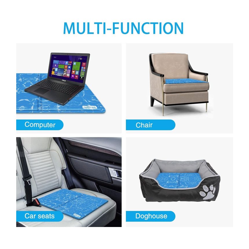 Το εσωτερικό υλικό του στρώματος δροσίας είναι 100% μη τοξικό τζελ αυτοψύξης, ασφαλές τόσο για τον άνθρωπο όσο και για τα κατοικίδια. Δεν χρειάζεται να καταψύχετε ή να ψύχετε, το τζελ ψύξης που ενεργοποιείται με πίεση λειτουργεί απορροφώντας τη θερμότητα του σώματος του σκύλου σας, χαλαρώνοντας και δροσίζοντας το κατοικίδιο σας στις ζεστές μέρες και νύχτες του καλοκαιριού. Κατασκευασμένο από υψηλής ποιότητας πολυεστερικό υλικό, αυτό το στρώμα δροσίας είναι ανθεκτικό στις γρατσουνιές και στη φθορά . Το ψυκτικό τζελ είναι υψηλής ασφάλειας, χωρίς ερεθισμό. Το στρώμα είναι αναδιπλούμενο που είναι βολικό για αποθήκευση ή μεταφορά για εξωτερικούς χώρους και ταξίδια. Το στρώμα δροσίας της εταιρίας Nobleza για κατοικίδια, είναι κατάλληλο για γάτα και σκύλο και τα κρατά από υπερθέρμανση και αφυδάτωση. Μπορεί να χρησιμοποιηθεί σε κρεβάτια σκύλων, κιβώτια, ράφια, καναπέδες, δάπεδα ή στο πίσω κάθισμα του αυτοκινήτου σας. Λειτουργεί όχι μόνο ως στρώμα δροσίας γατας & σκύλου αλλά και ως μαξιλάρι, μαξιλάρι καθίσματος ή ψύξη υπολογιστή.